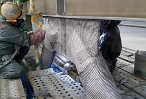 PFP 작업 후 후행 용접작업을 용이하게 하기 위해 보류부위를 마스킹 한다.